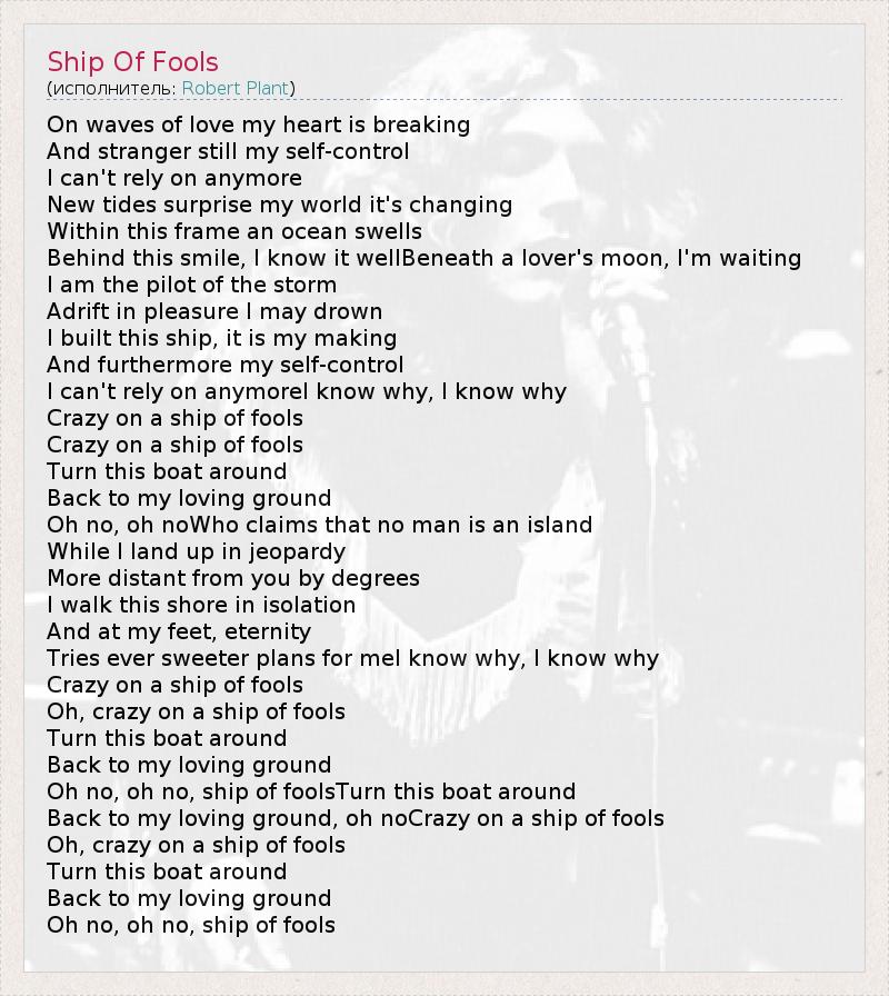 А как ты думаешь, о чем песня "Ship Of Fools" ?