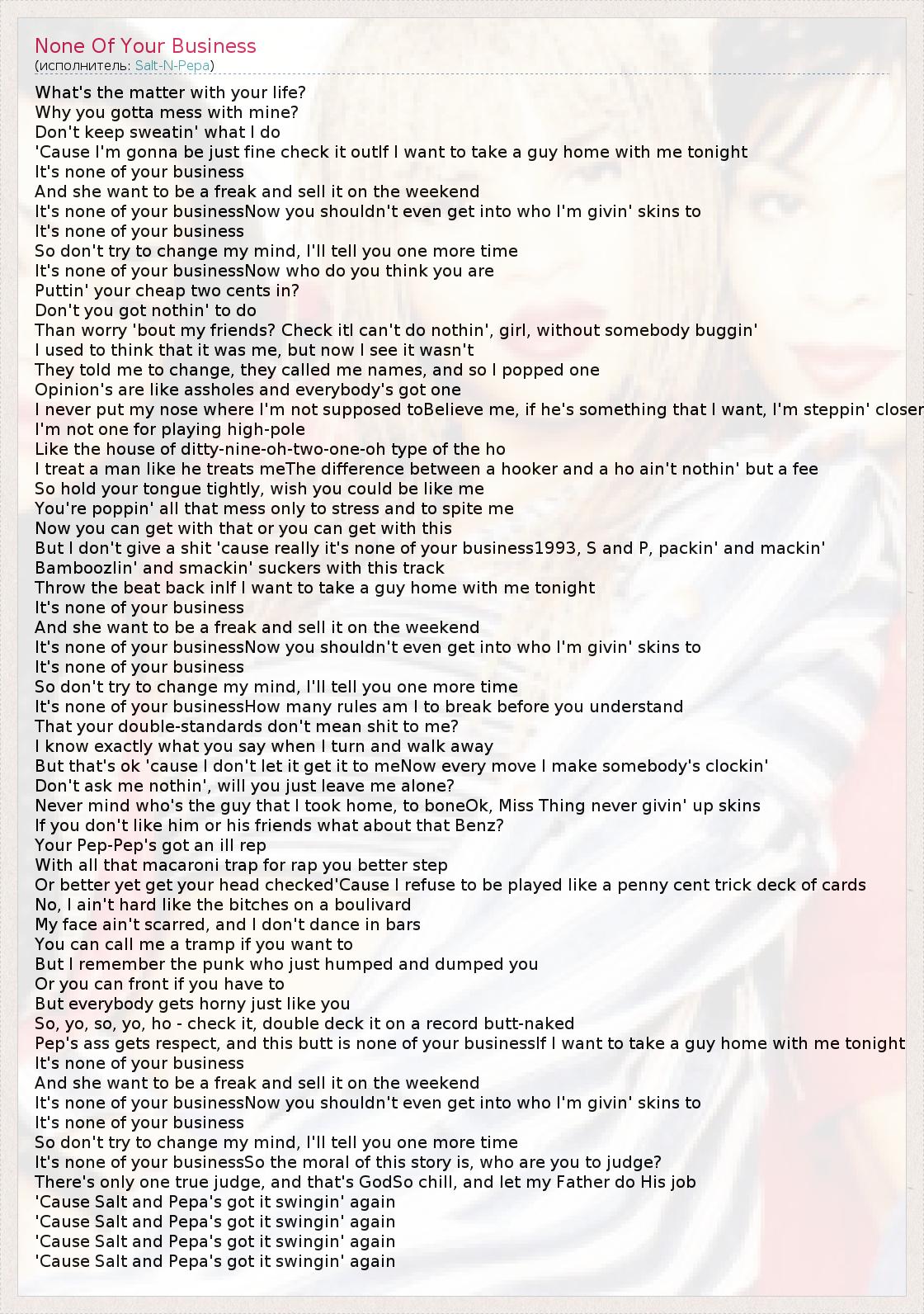 А как ты думаешь, о чем песня "None Of Your Business" ?