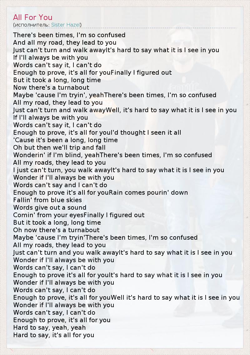 Enough to prove, it's all for youWell it's hard to say what it is I see in you