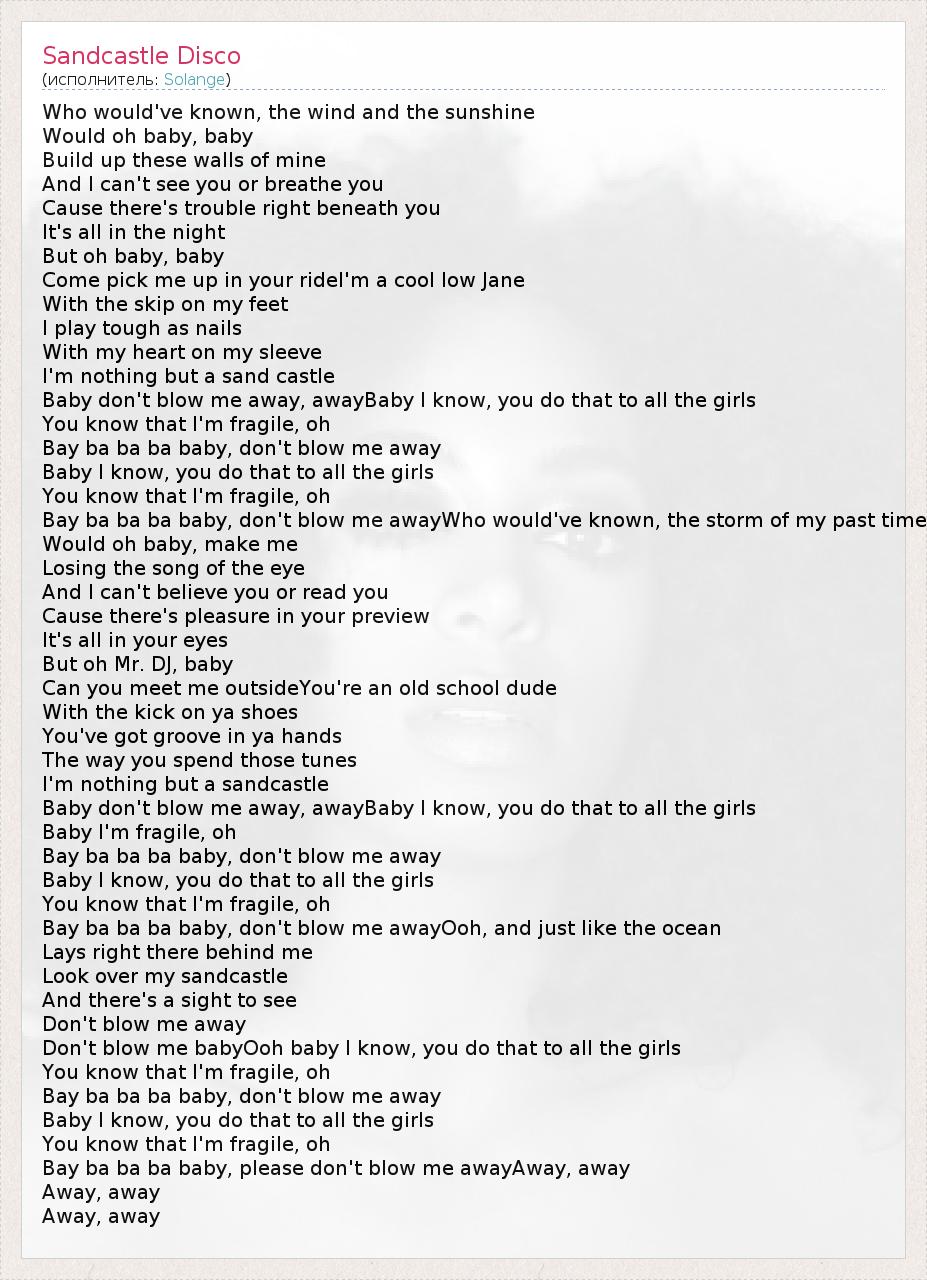 А как ты думаешь, о чем песня "Sandcastle Disco" ?