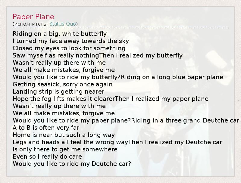 А как ты думаешь, о чем песня "Paper Plane" ?