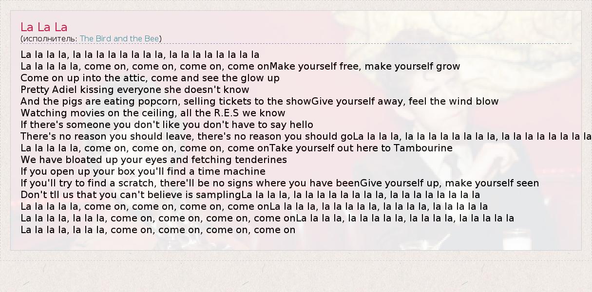 La la la la, la la la, come on, come on, come on, come onLa la la la, la la la la la, la la la la, la la la la la