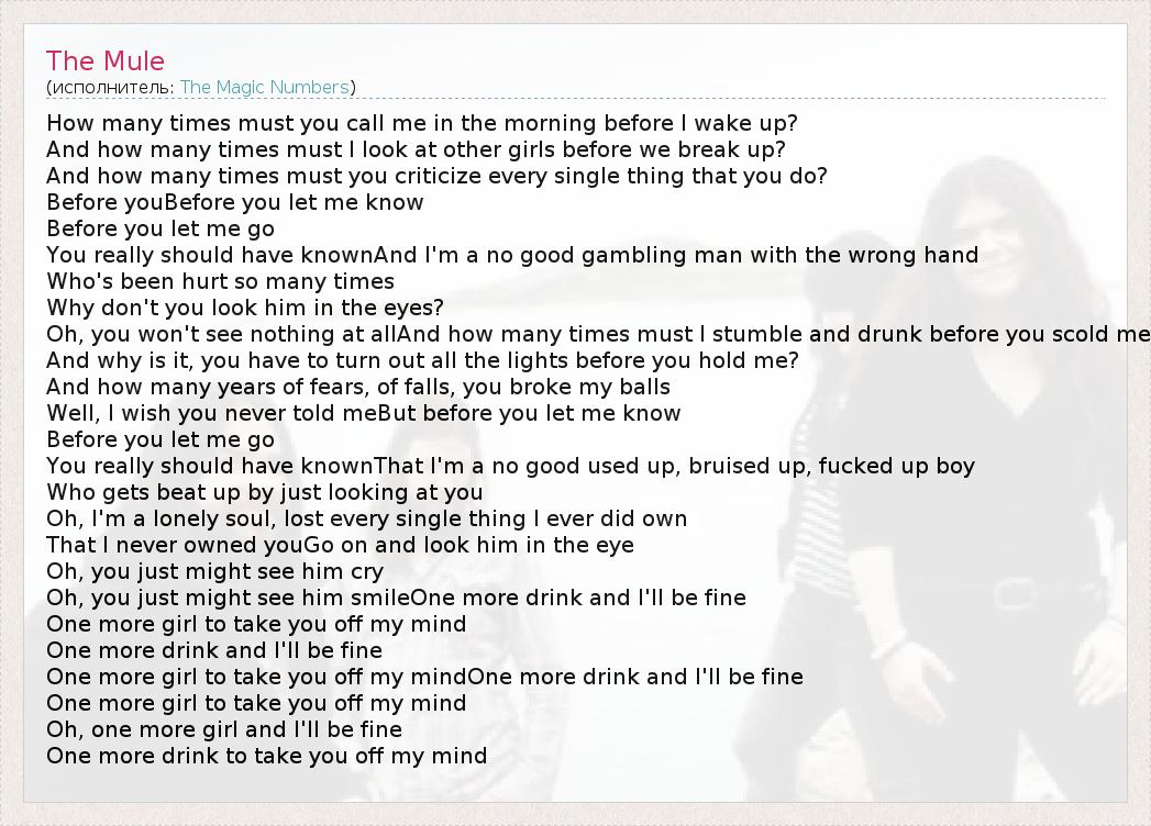 А как ты думаешь, о чем песня "The Mule" ?