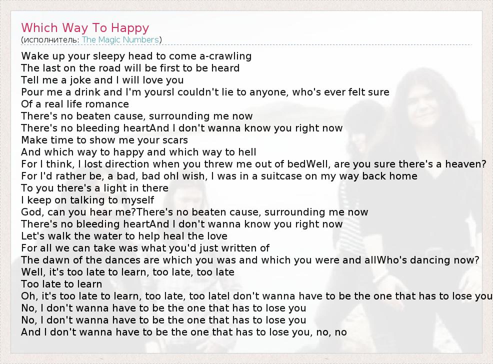 А как ты думаешь, о чем песня "Which Way To Happy" ?