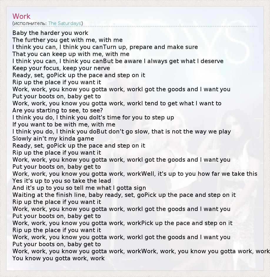 Work, work, you know you gotta work, workWork, work, you know you gotta work, work