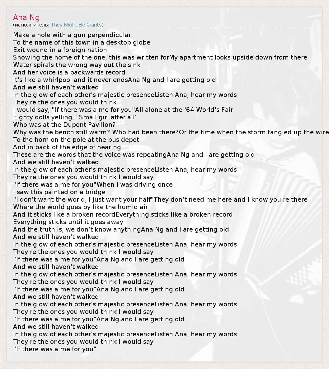 А как ты думаешь, о чем песня "Ana Ng" ?