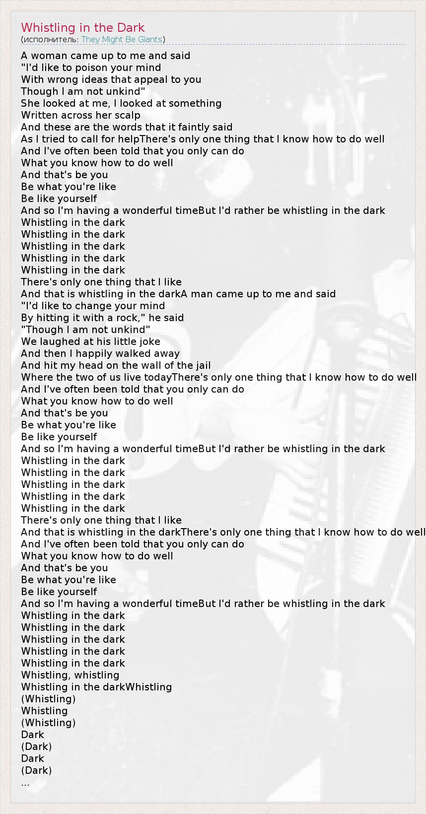 А как ты думаешь, о чем песня "Whistling in the Dark" ?