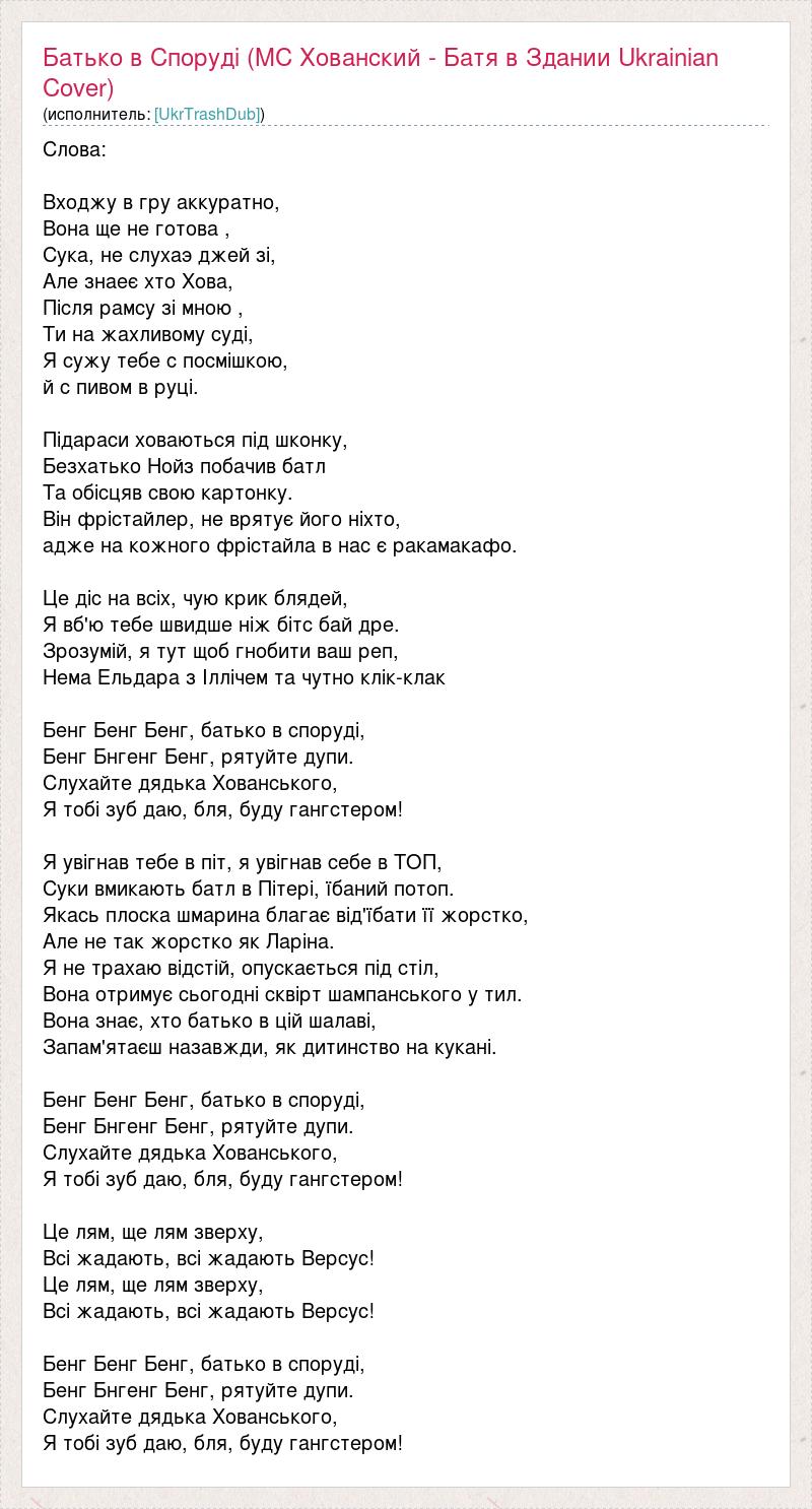 А как ты думаешь, о чем песня "Батько в Споруді (MC Хованский - Батя в Здании Ukrainian Cover)" ?