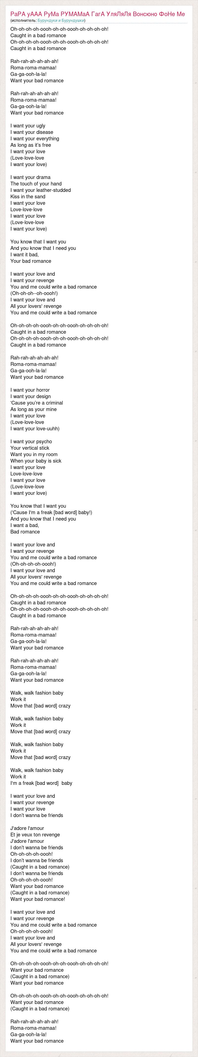 А как ты думаешь, о чем песня "Oh-oh-oh-oh-oooh-oh-oh-oooh-oh-oh-oh-oh!" ?