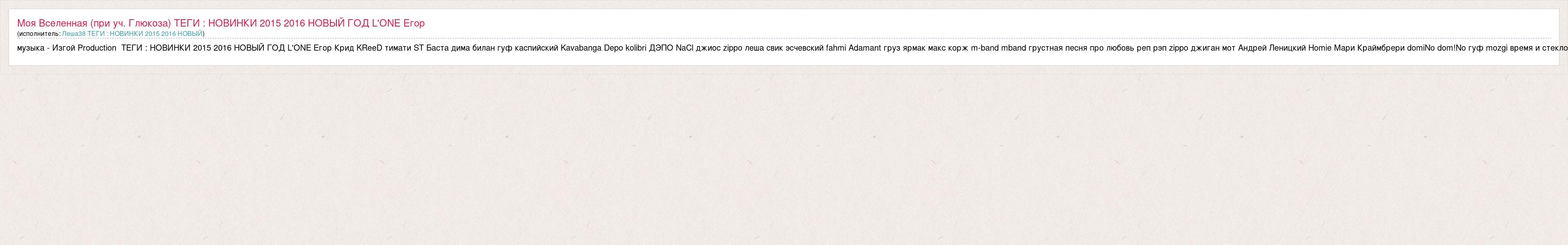 музыка - Изгой Production ТЕГИ : НОВИНКИ 2015 2016 НОВЫЙ ГОД L'ONE Е
