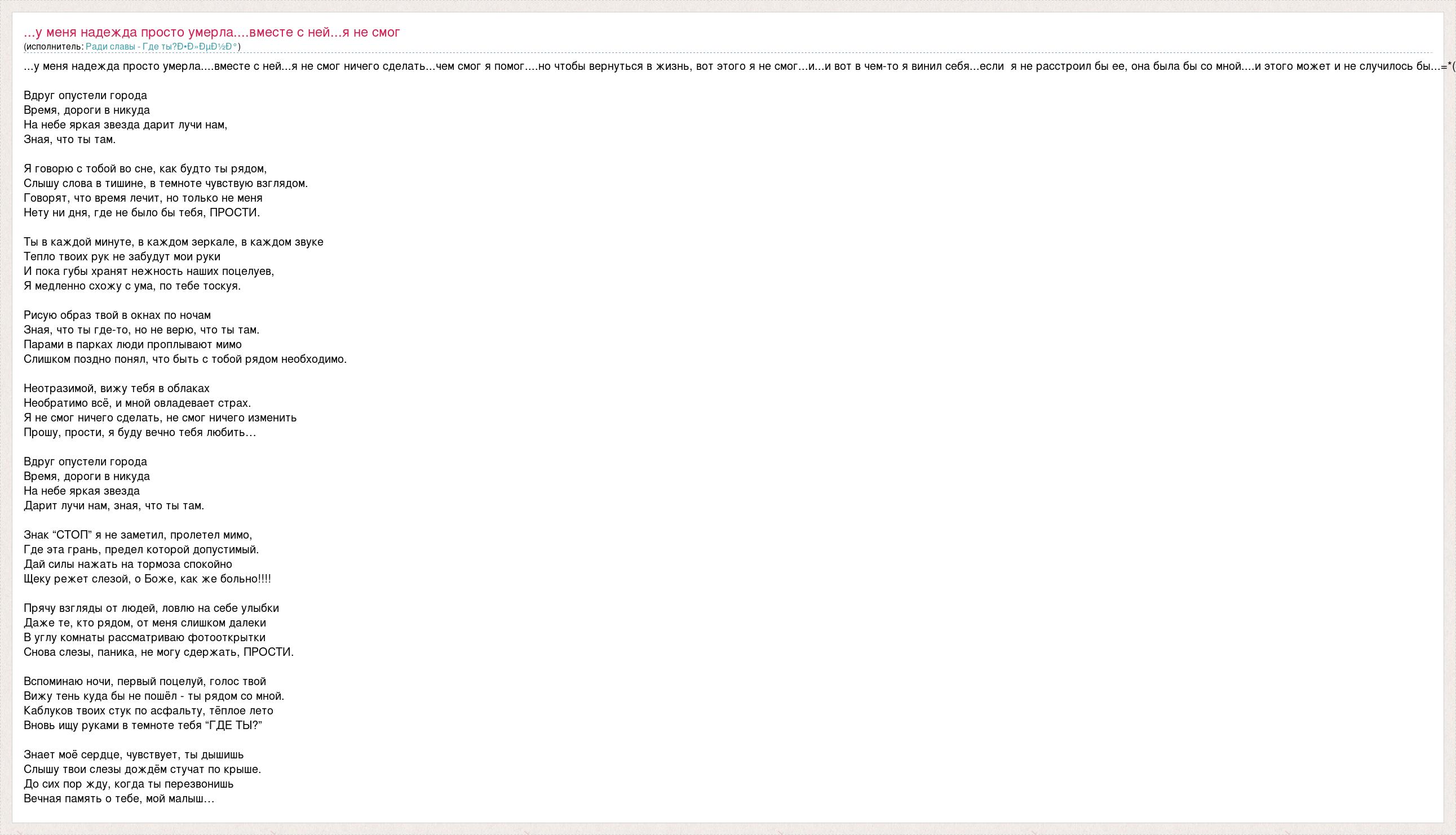 Главная→Исполнители→Неизвестен→...у меня надежда просто умерла....вместе с ней...я не смог ничего сдел