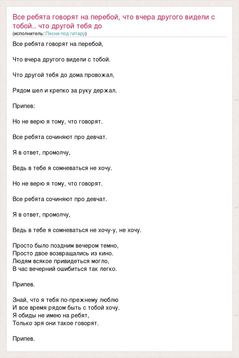 Все ребята говорят на перебой, что вчера другого видели с тобой.. что дру