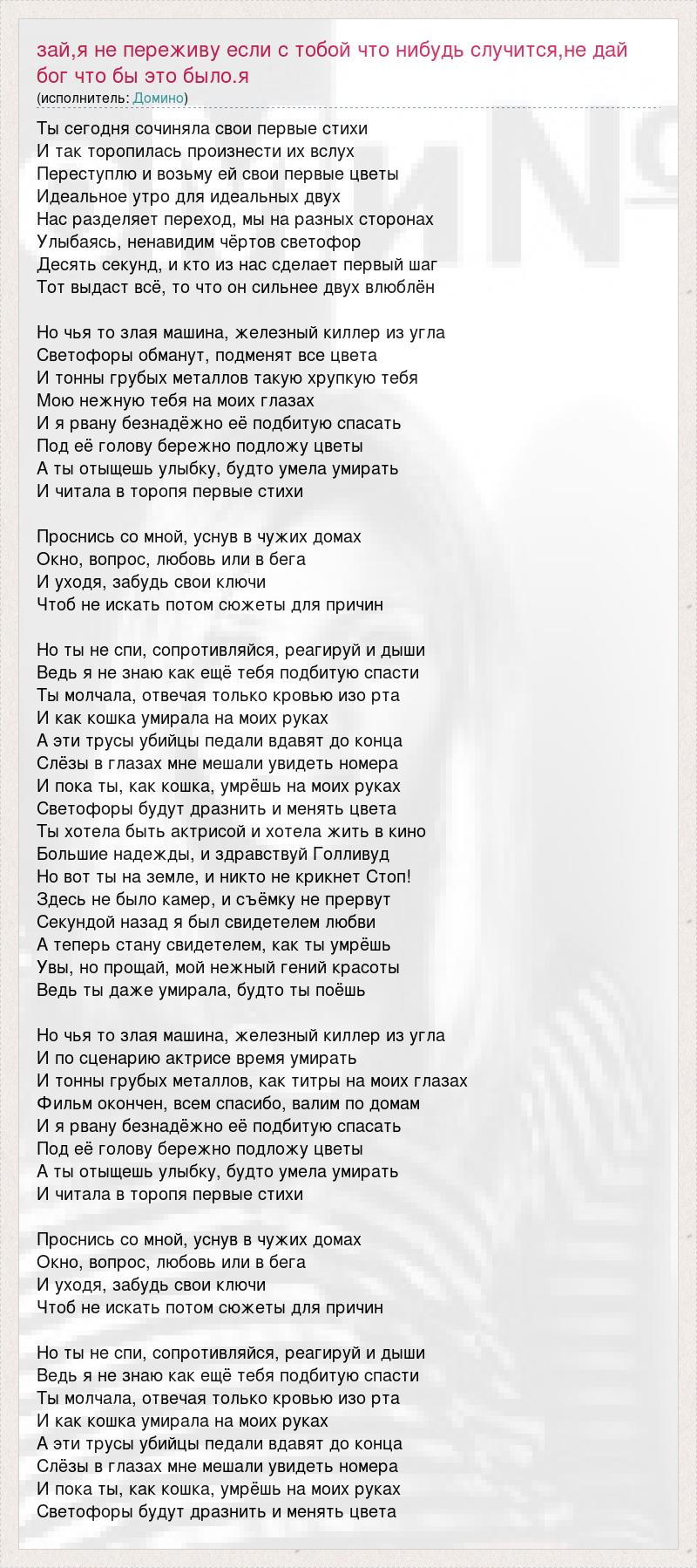 Главная→Исполнители→Домино→Зай,я не переживу если с тобой что нибудь случится,не дай бог что бы это б